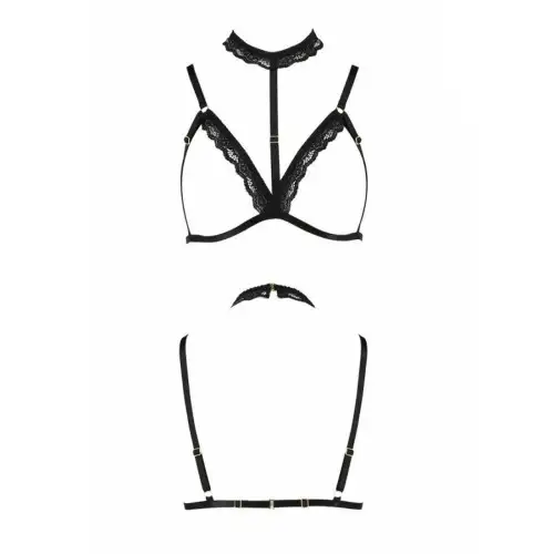Этот бюстгальтер, изготовленный из высококачественных материалов, обеспечивает комфорт и поддержку. Мягкие чашки отделаны нежным кружевом, а регулируемые бретели идеально подходят для любого типа фигуры. Воротник-ошейник добавляет интриги, делая этот бюстгальтер идеальным для тех, кто хочет добавить изюминку в свою коллекцию нижнего белья.