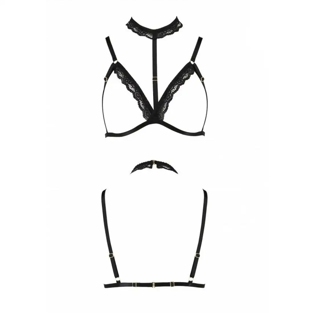 Бюстгальтер-стрепы с чокером Shelly Bra black XXL/XXXL — Passion Exclusive
