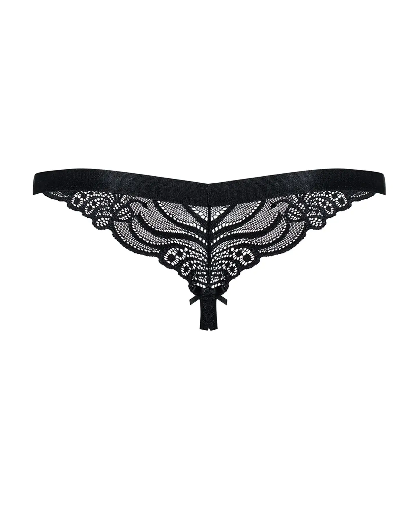 Фотографии Кружевные танга с доступом Obsessive 828-THC-1 crotchless thong L/XL, черные