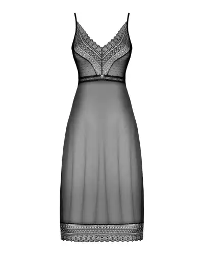 Полупрозрачная длинная сорочка Obsessive Estiqua chemise M/L, черный, ассиметричный крой