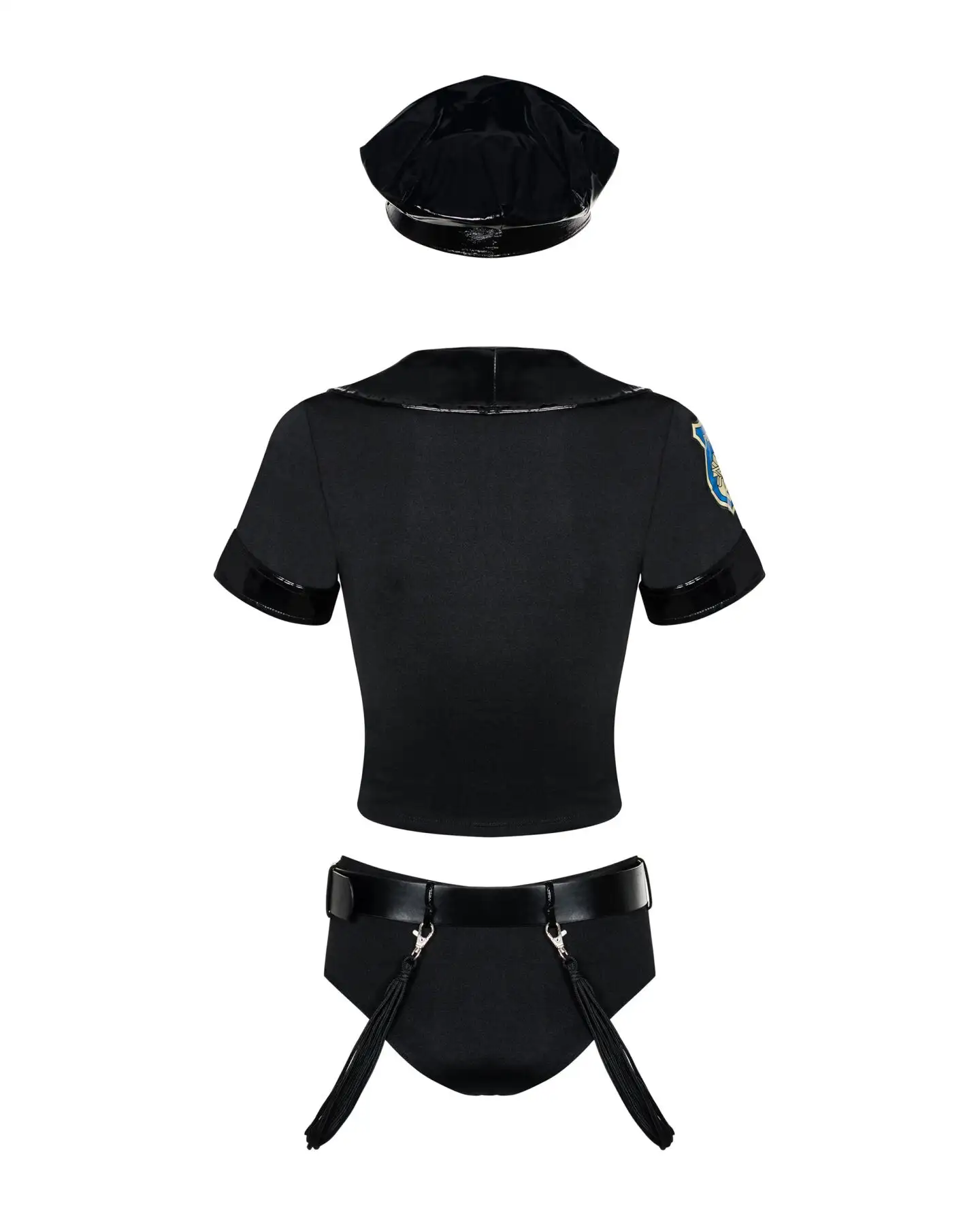 Эротический костюм полицейского Obsessive Police set S/M, black, топ, шорты, кепка, пояс, портупея