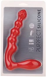 Силиконовый анальный стимулятор PURRFECT SILICONE BUTT PLUG красного цвета с выпуклостями по всей длине. Длина: 19 см.