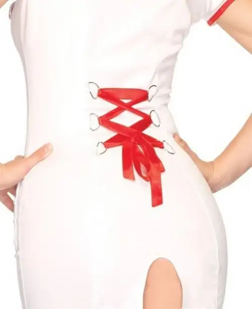 Чтобы завершить образ, к этому костюму также прилагается подходящая шапочка медсестры, которая идеально сидит на голове. Кепка украшена символом красного креста, придающим оригинальность этому соблазнительному ансамблю.