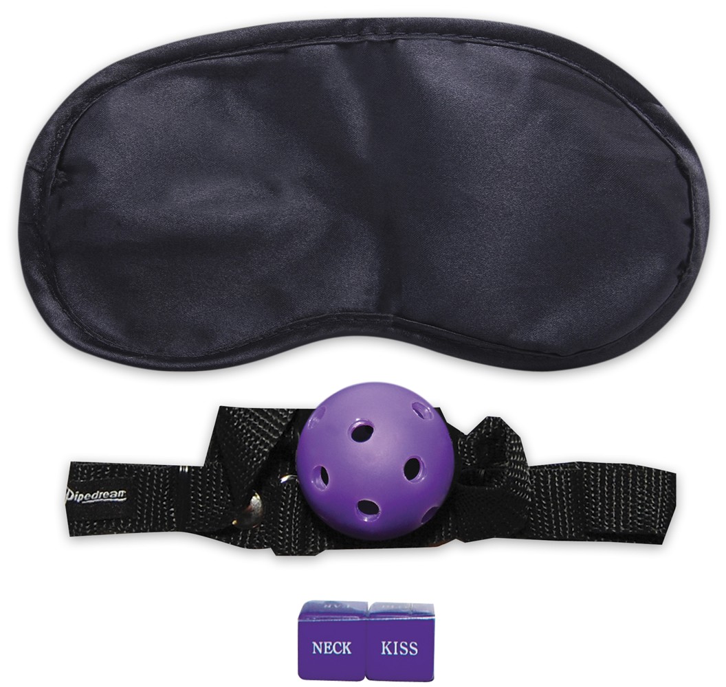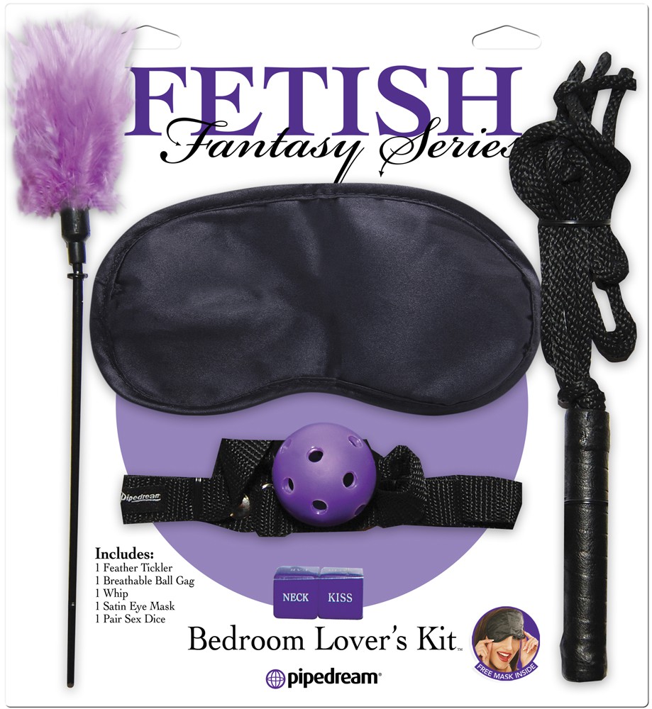 Набор FETISH FANTASY BEDROOM LOVER'S KIT. В этот комплект входят - маска на глаза, кляп через который можно дышать, метелка, плеть, кубики.
