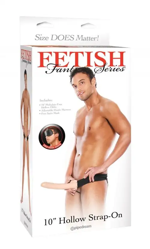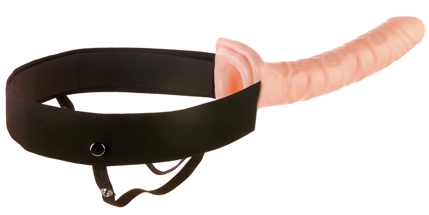 Страпон HOLLOW 10 STRAP-ON FLESH. Подойдет как для мужчин, так и для женщин. Фаллос внутри полый. Крепление ремешков регулируется на любой размер. Длина фаллоса  - 25 см, диаметр - 5 см.