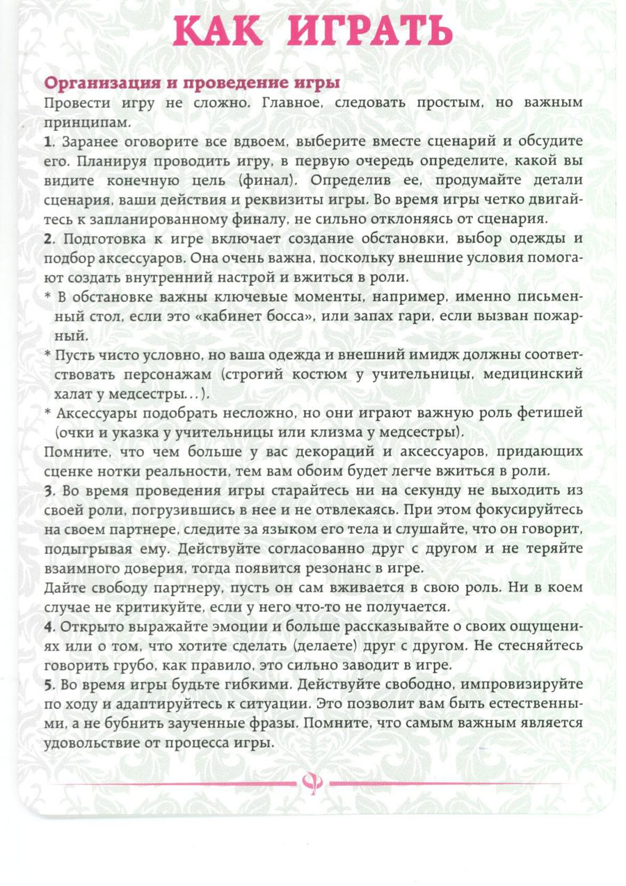 Помимо карт, в этой игре также есть рекомендации, как играть и как общаться с вашим партнером. Вы научитесь выражать свои желания, активно слушать и создавать безопасное пространство, в котором вам обоим будет комфортно исследовать новую территорию.