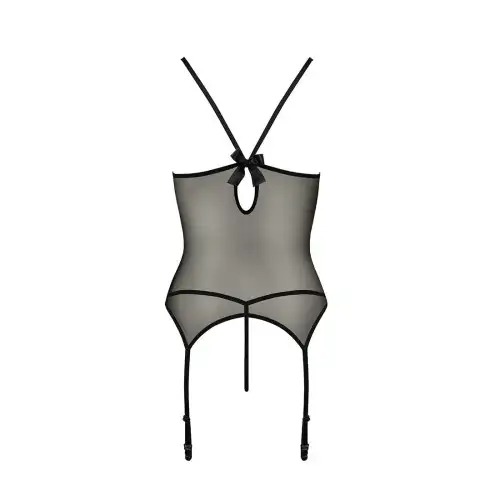 Корсет с пажами MELANIA CORSET black L/XL - Passion, трусики, полупрозрачный