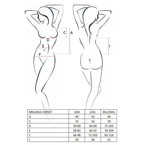 MELANIA CORSET выпускается в размерах L/XL, что делает его подходящим для женщин с большим бюстом или фигурой с пышными формами. Его также невероятно удобно носить благодаря мягкой ткани и гибким косточкам.